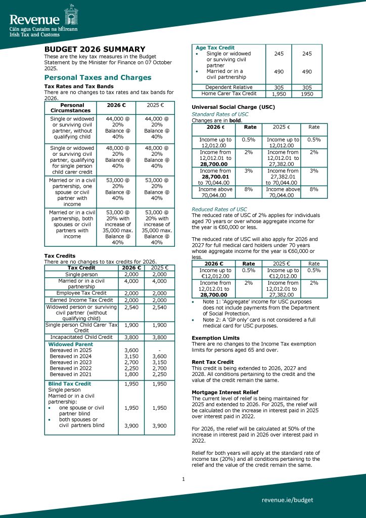- Key tax measures in the Budget 2026 Statement of 7 October 2025.